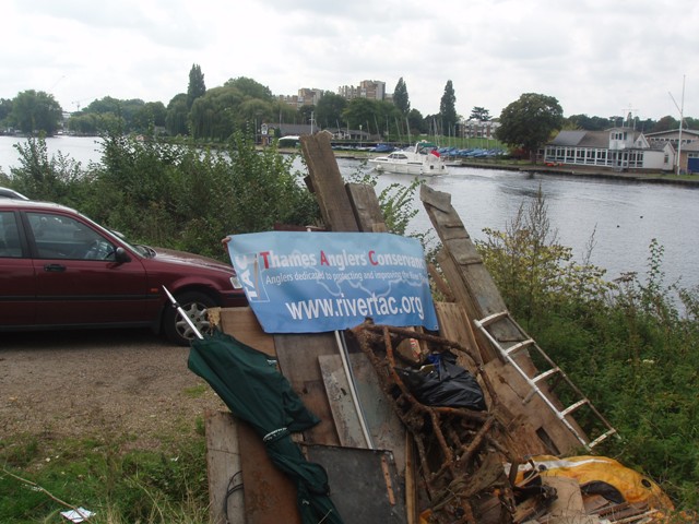Since March 15th 2010 we have now collected 108 bags of bank-side rubbish off the river Thames between Cherstey and Teddington. Quite a staggering achievement for a group of volunteers and Anglers. This weekend saw our members up at Walton On Thames around Desborough Island and collecting 13 filled bags of rubbish plus a TV, Deckchair and a broken spade. Thanks to the TAC members who turned up and helped including our youngest member. Pictures of the event are below.